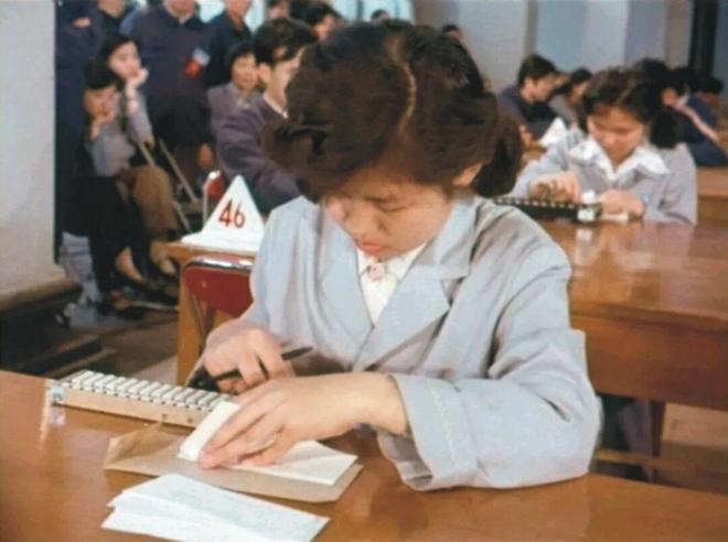 从那两张照片里,也能一观工行员工操练基本功的精神及态度的。旁的不消说,那练兵和比武是贯穿四季的。看那张黑白照,估计是拍摄在春秋之季;聚精会神打算盘的长辫子姑娘,穿着上海人叫做“两用衫”的罩衫。而那一幅彩照,想来是成像于夏日,赛场中的人,多穿的是衬衫。